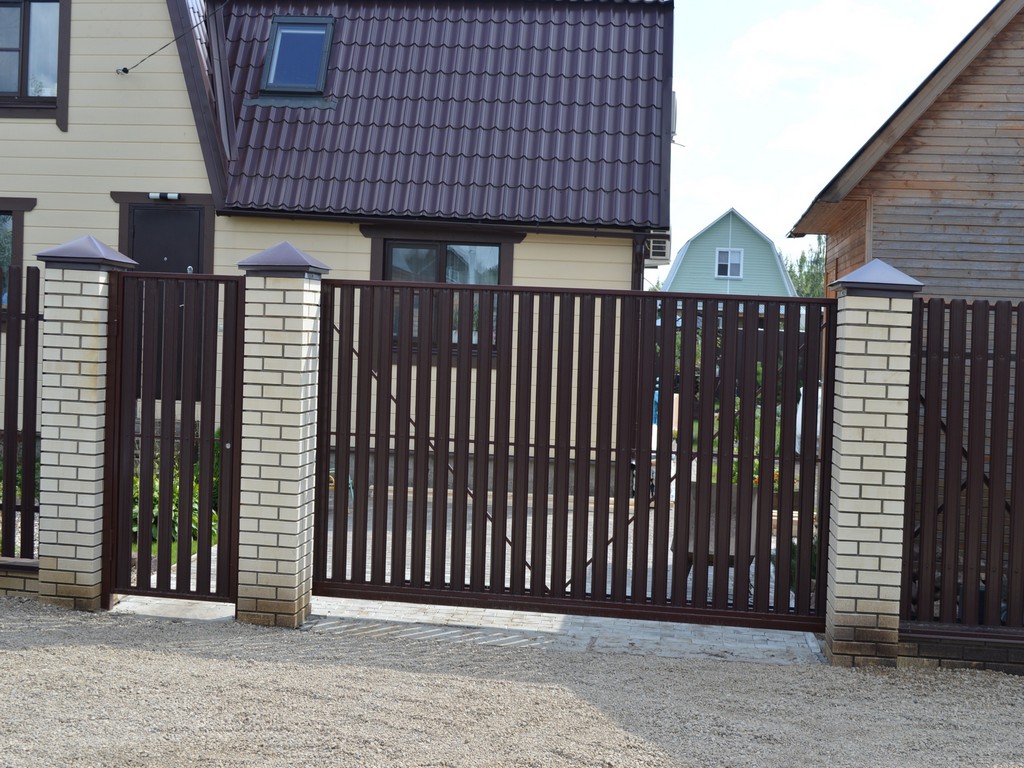 Откатные ворота из евроштакетника пример 7