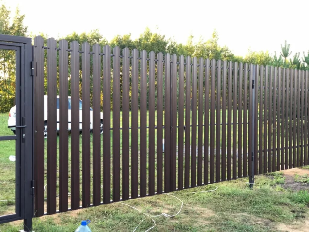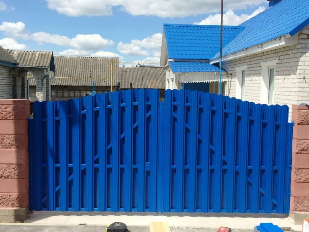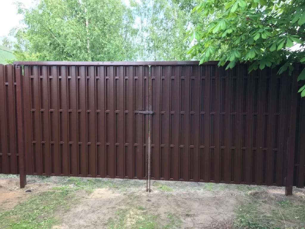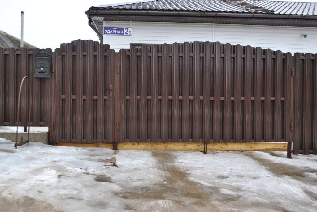 Ворота из евроштакетника распашные пример 15