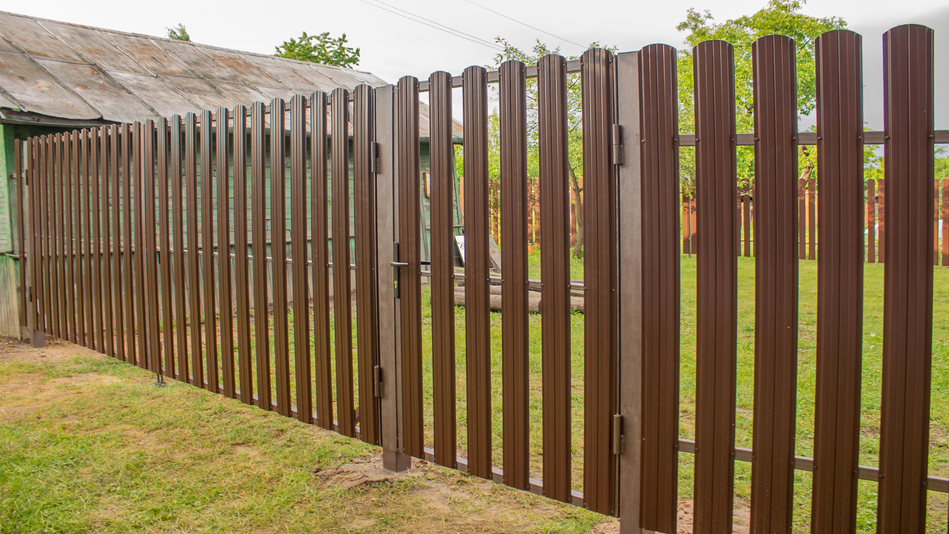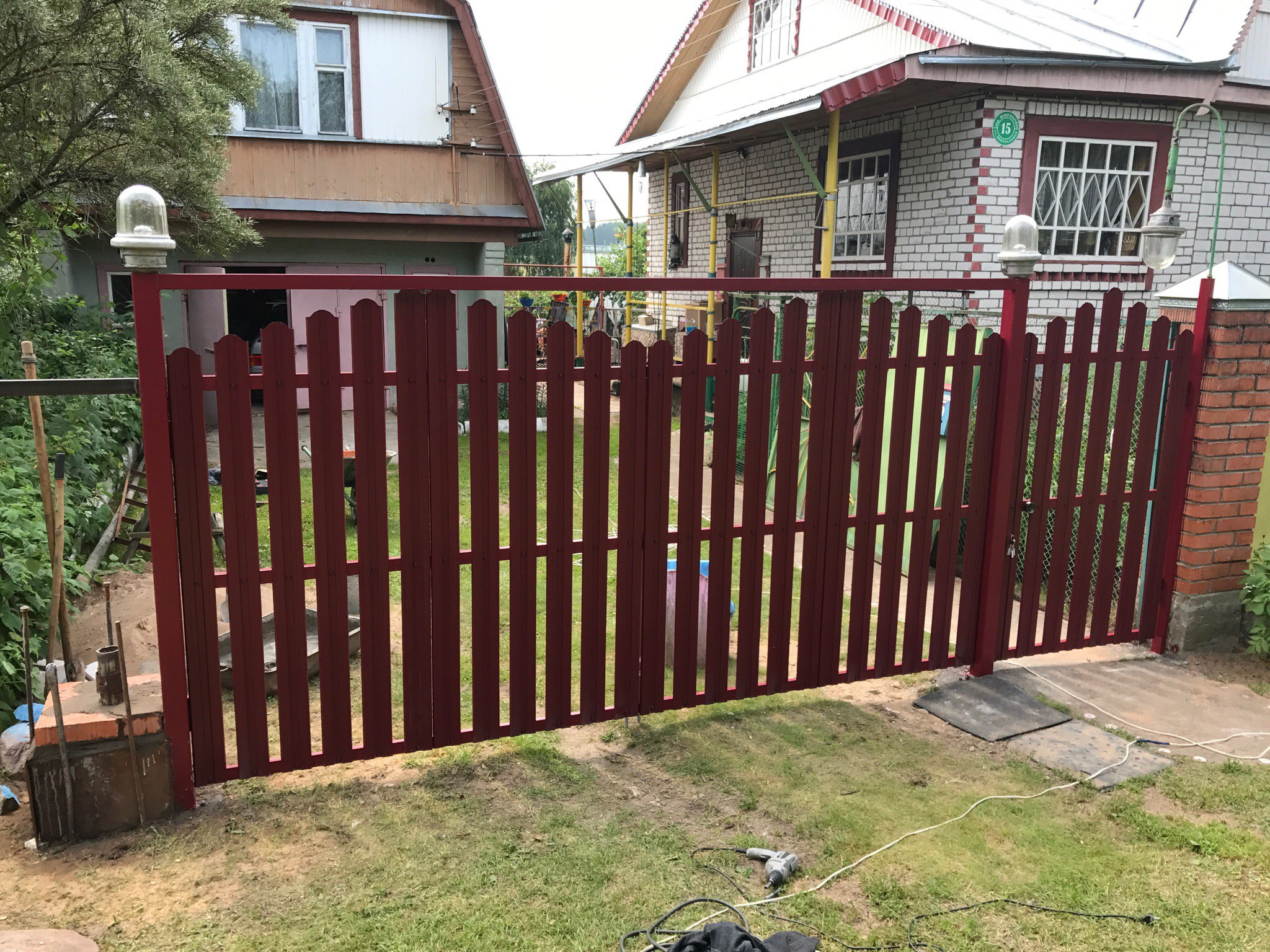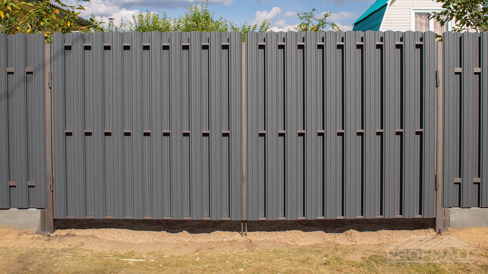 Ворота из евроштакетника распашные пример 15
